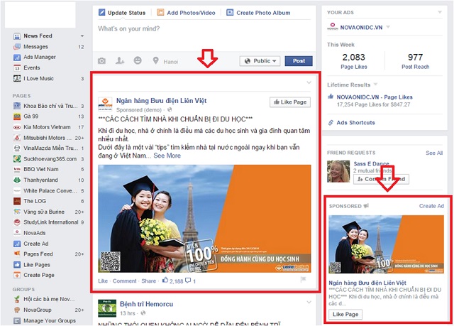 Vì thế các bạn nên liên hệ để chuyên gia để được tư vấn! Người ta nói kinh nghiệm được đúc kết từ thực tế. Khi đã chạy hàng trăm tỷ đồng chuyển về Facebook thì những kinh nghiệm này luôn là thứ quý báo để nhận định quảng cáo. Ngoài những điều cơ bản nêu trên, còn kể đến rất nhiều yếu tố khác giúp cho quảng cáo hiệu quả hơn. Bạn lựa chọn hình thức nào cho phù hợp với quảng cáo của mình? Chúng tôi sẽ tư vấn lựa chọn hình thức quảng cáo phù hợp nhất trong các hình thức bên dưới: Một số người chưa rõ quảng cáo Facebook sẽ hiển thị ở đâu?